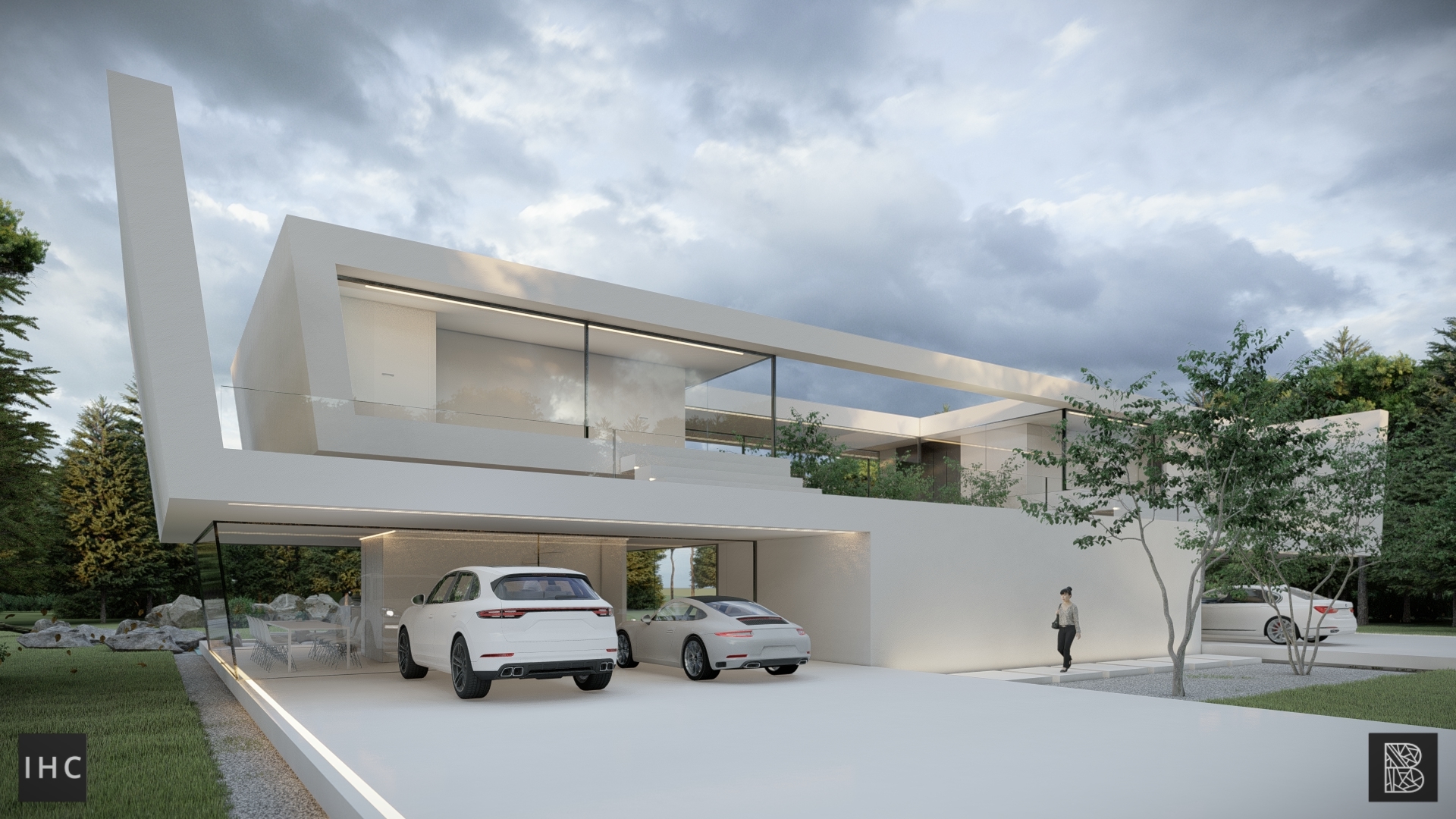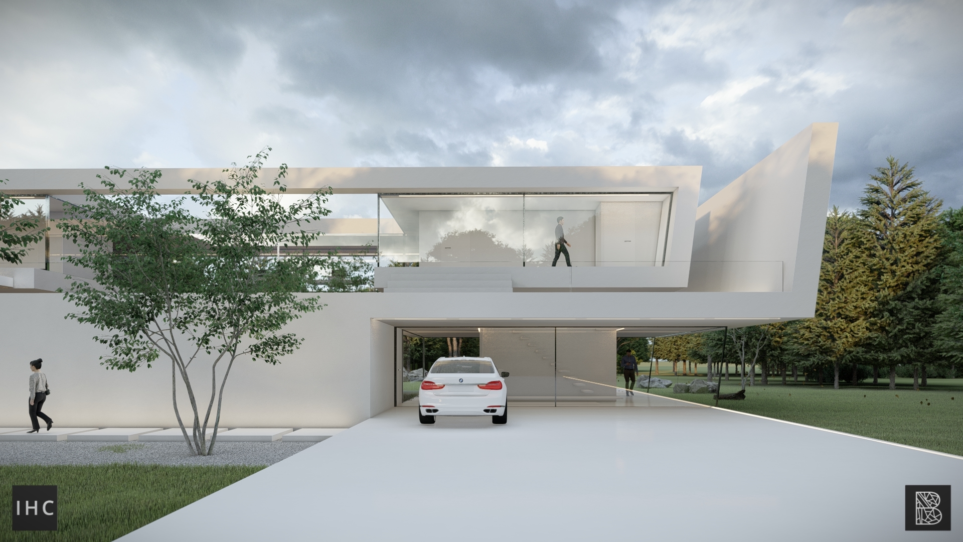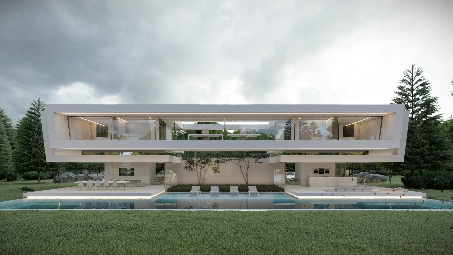 Based on the floating and continuous lines of the BMW 7 Series, this design brings the charms of automotive design to architecture. The futuristic shape makes this design one of a kind. One volume floats above the other with seemingly no supporting columns. An unmistakable architectural statement: is this the future?