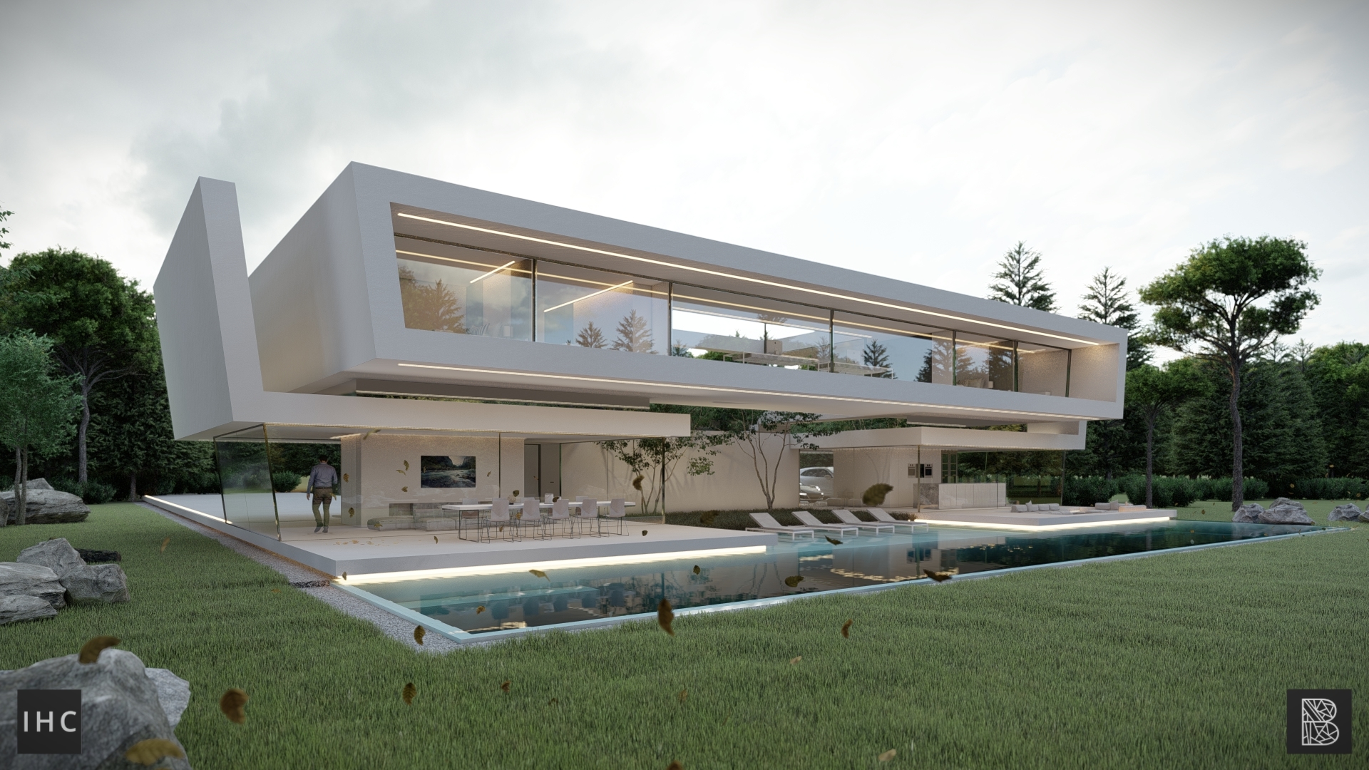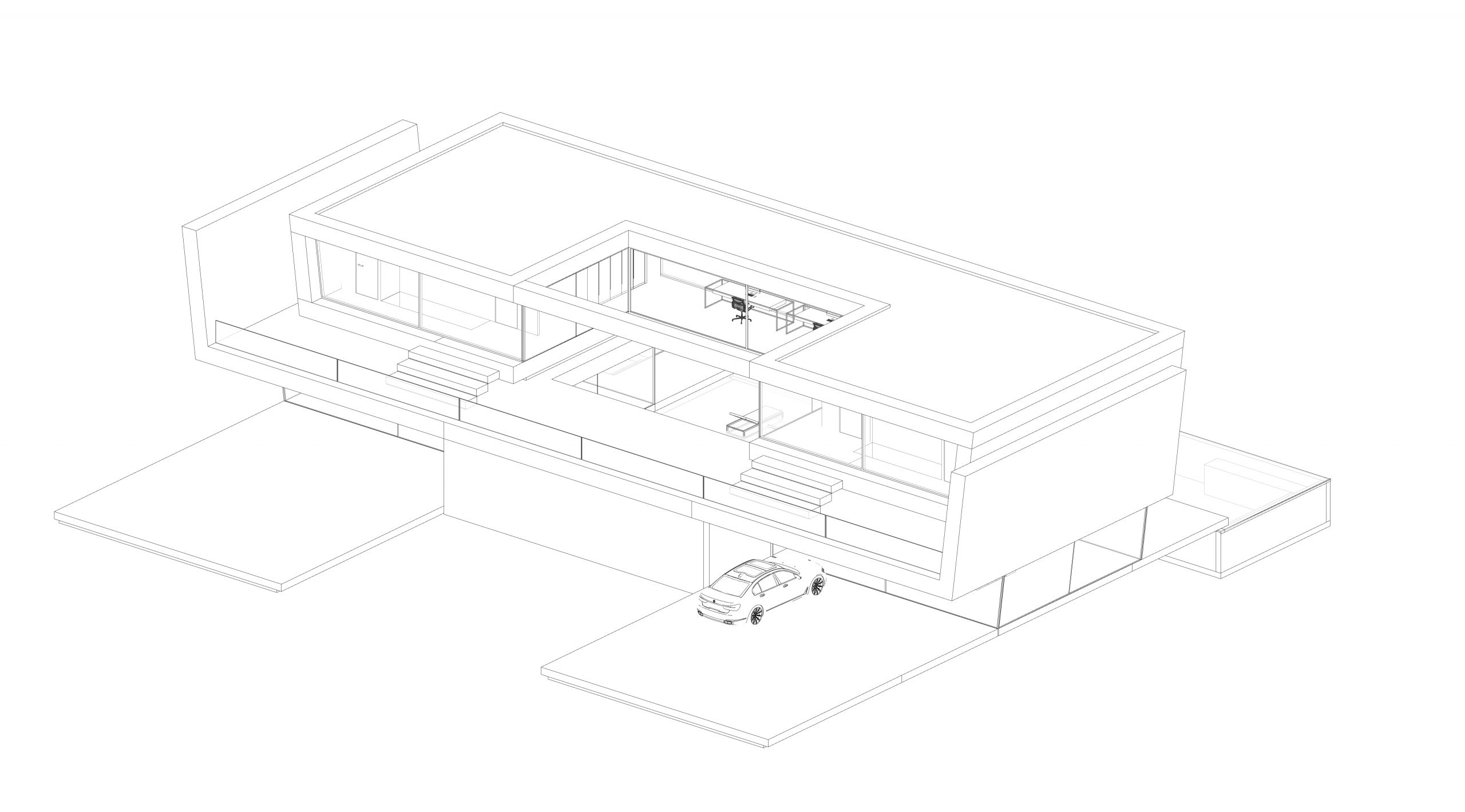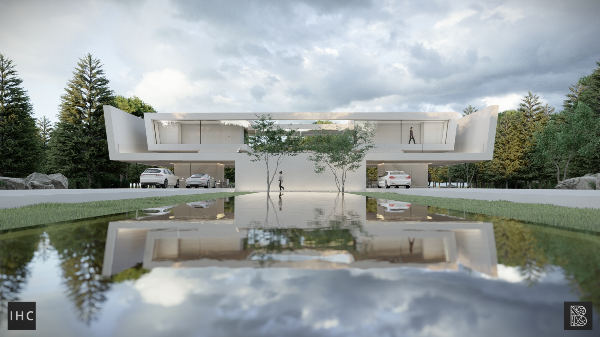 Based on the floating and continuous lines of the BMW 7 Series, this design brings the charms of automotive design to architecture. The futuristic shape makes this design one of a kind. One volume floats above the other with seemingly no supporting columns. An unmistakable architectural statement: is this the future?