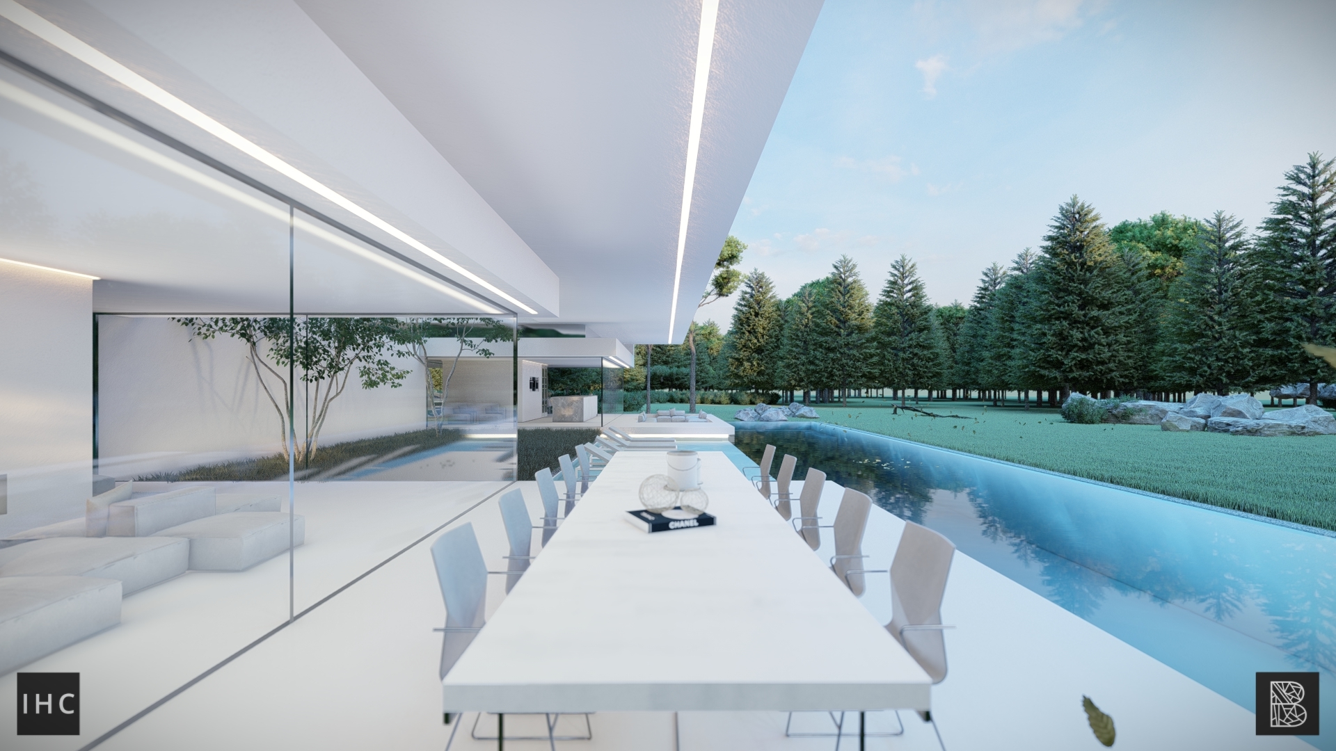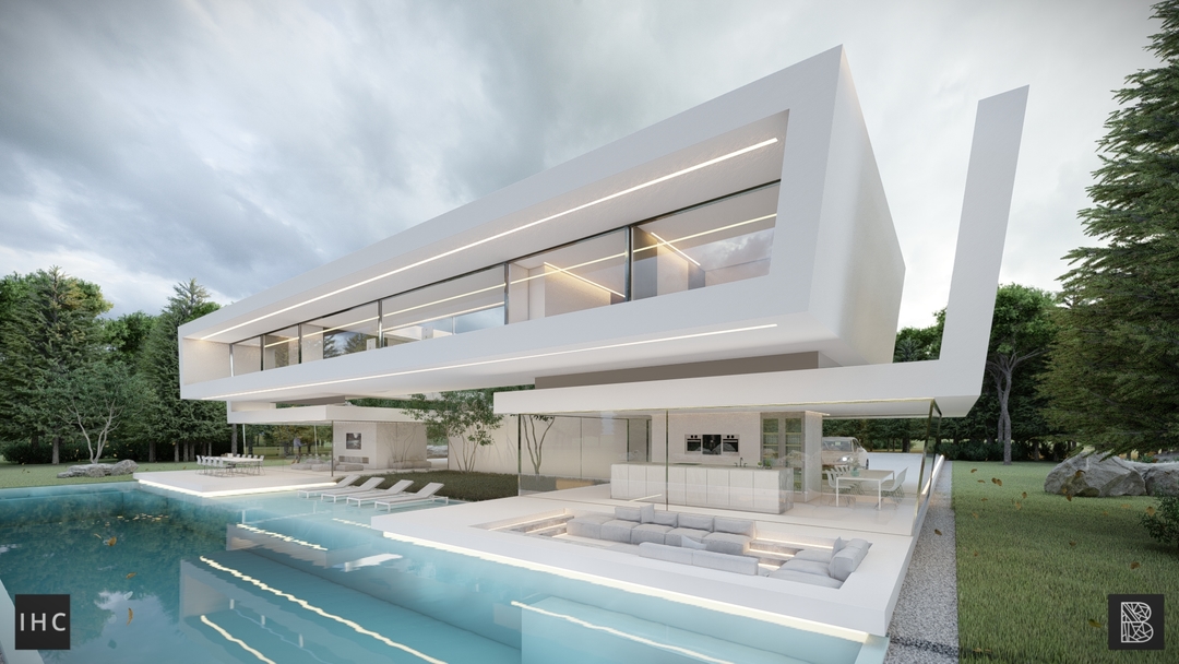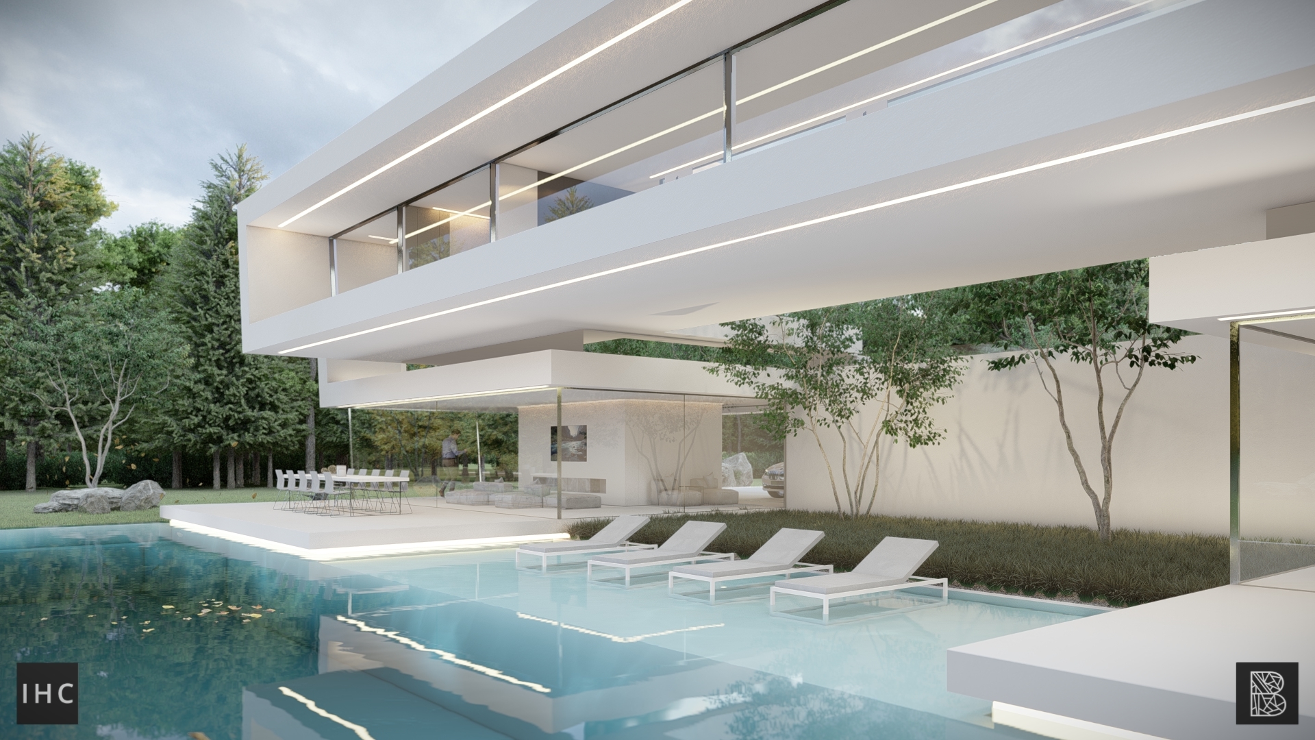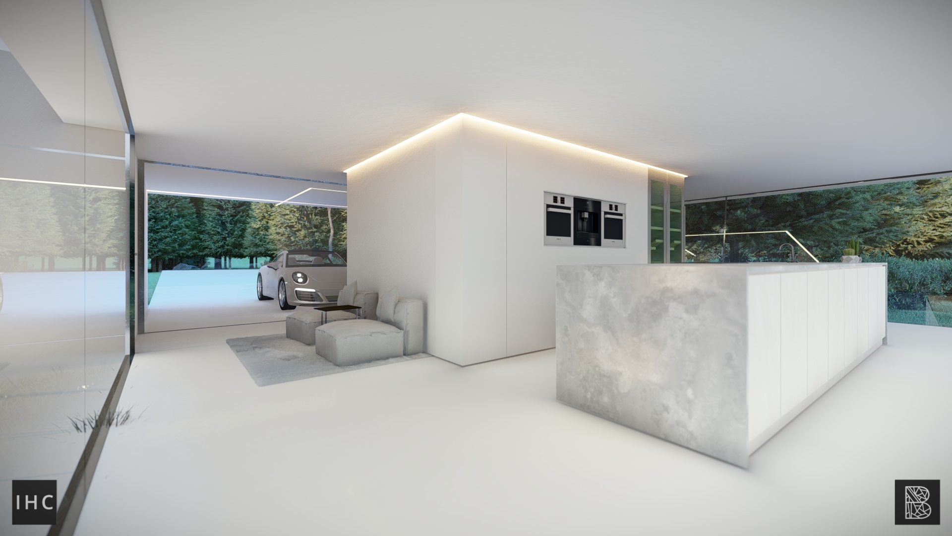 The concept of this house is continued and perfected in every architectural decision. By distinct LED lines, the most important architectural lines are accentuated. The white stucco material makes these lines stand even more.