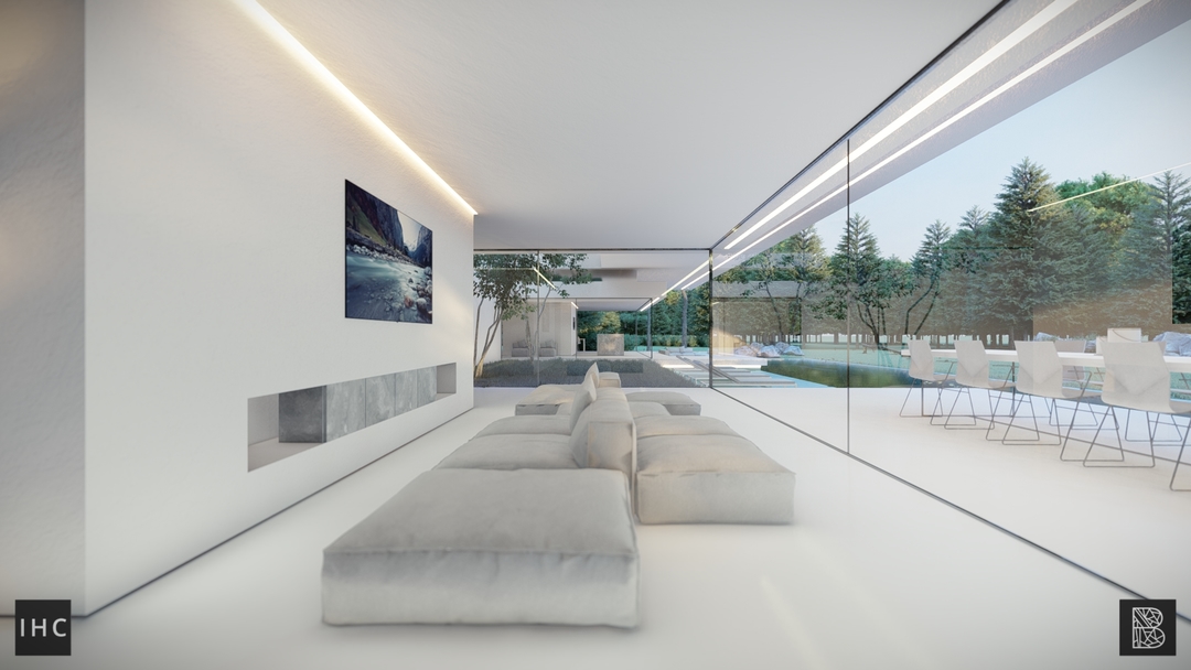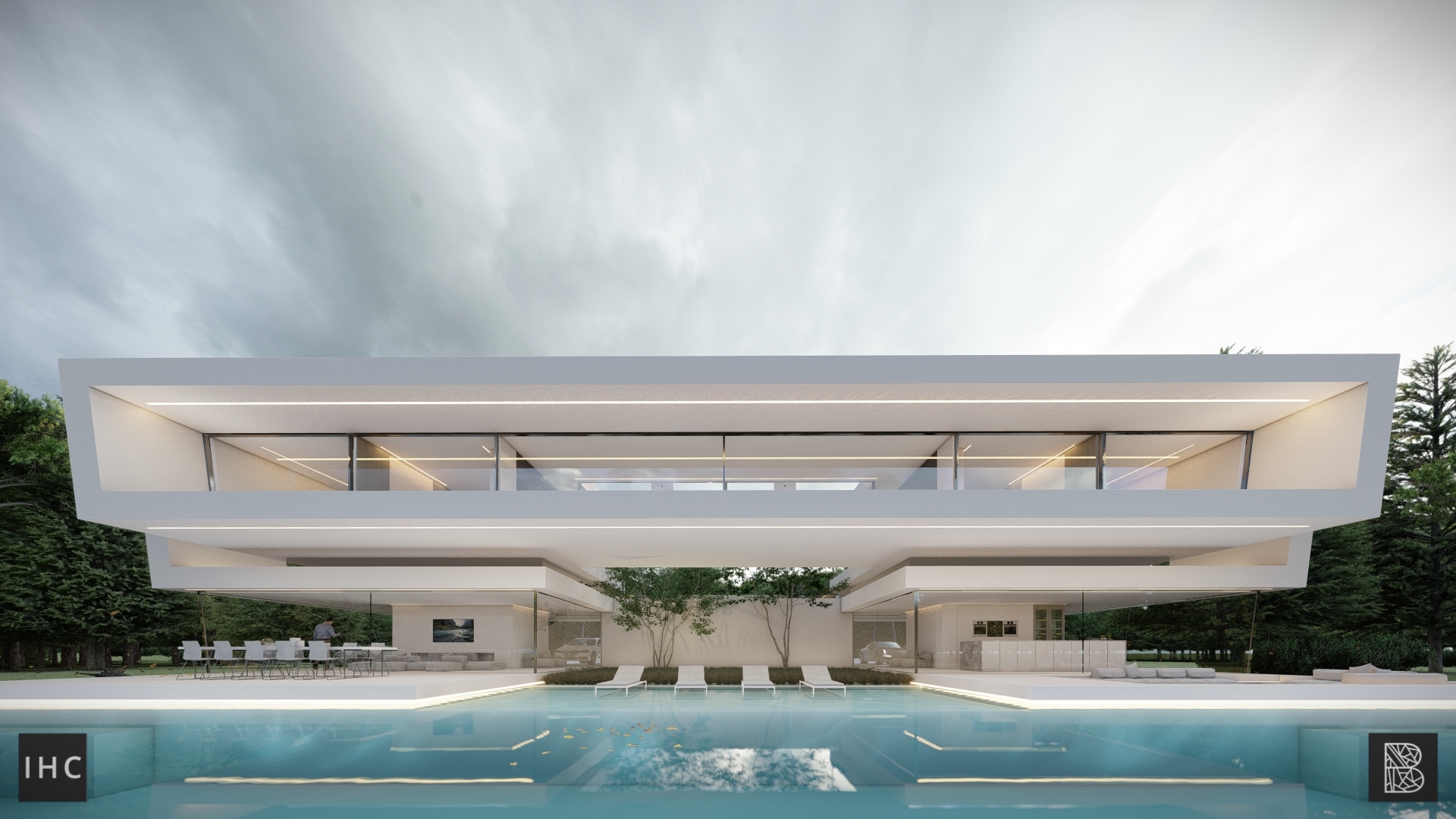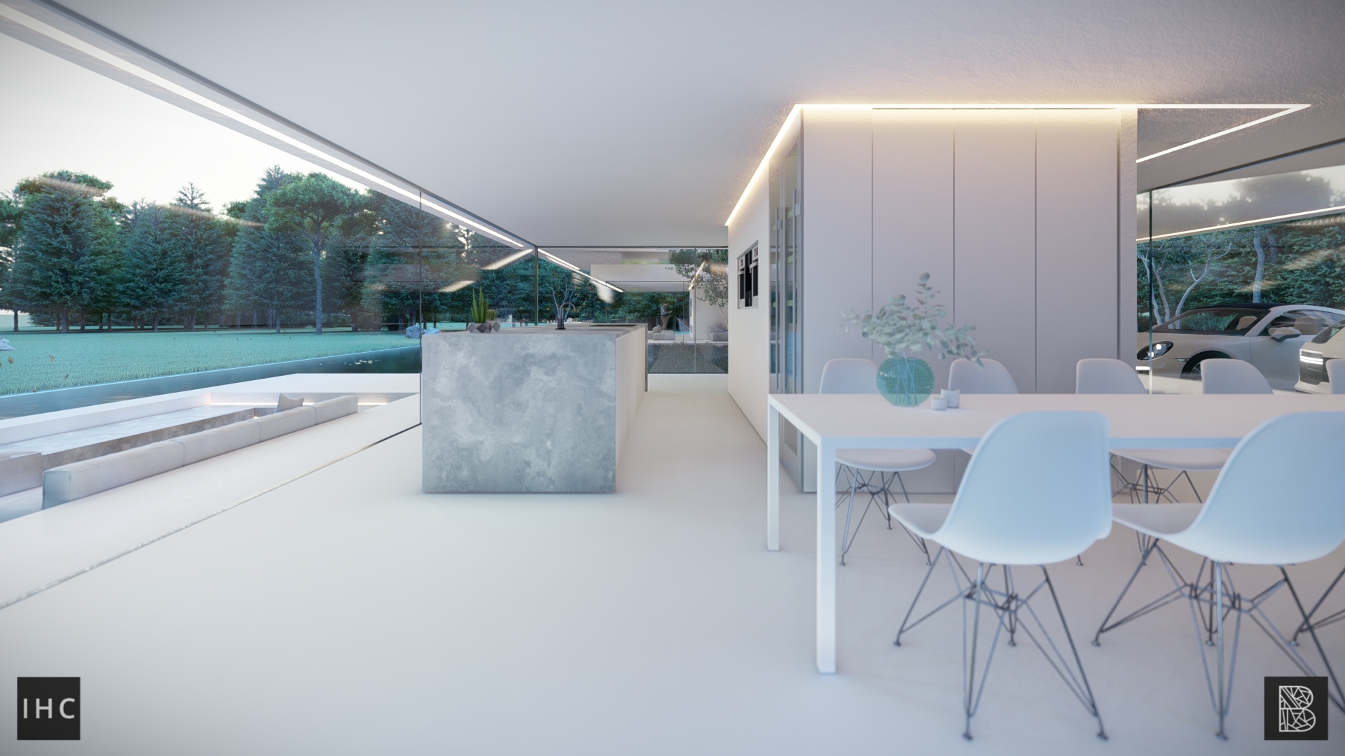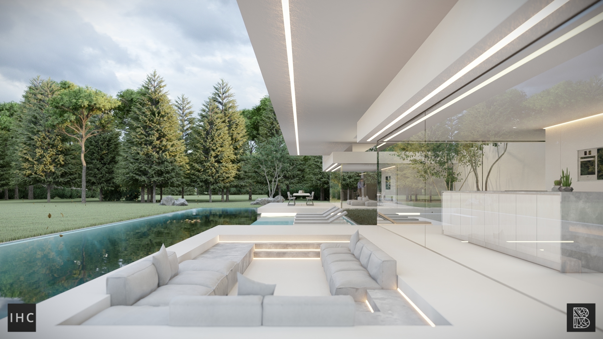 The concept of this house is continued and perfected in every architectural decision. By distinct LED lines, the most important architectural lines are accentuated. The white stucco material makes these lines stand even more.
