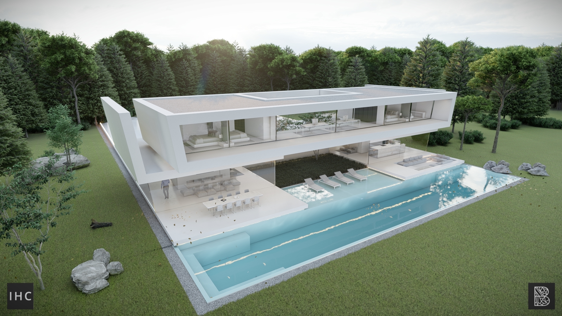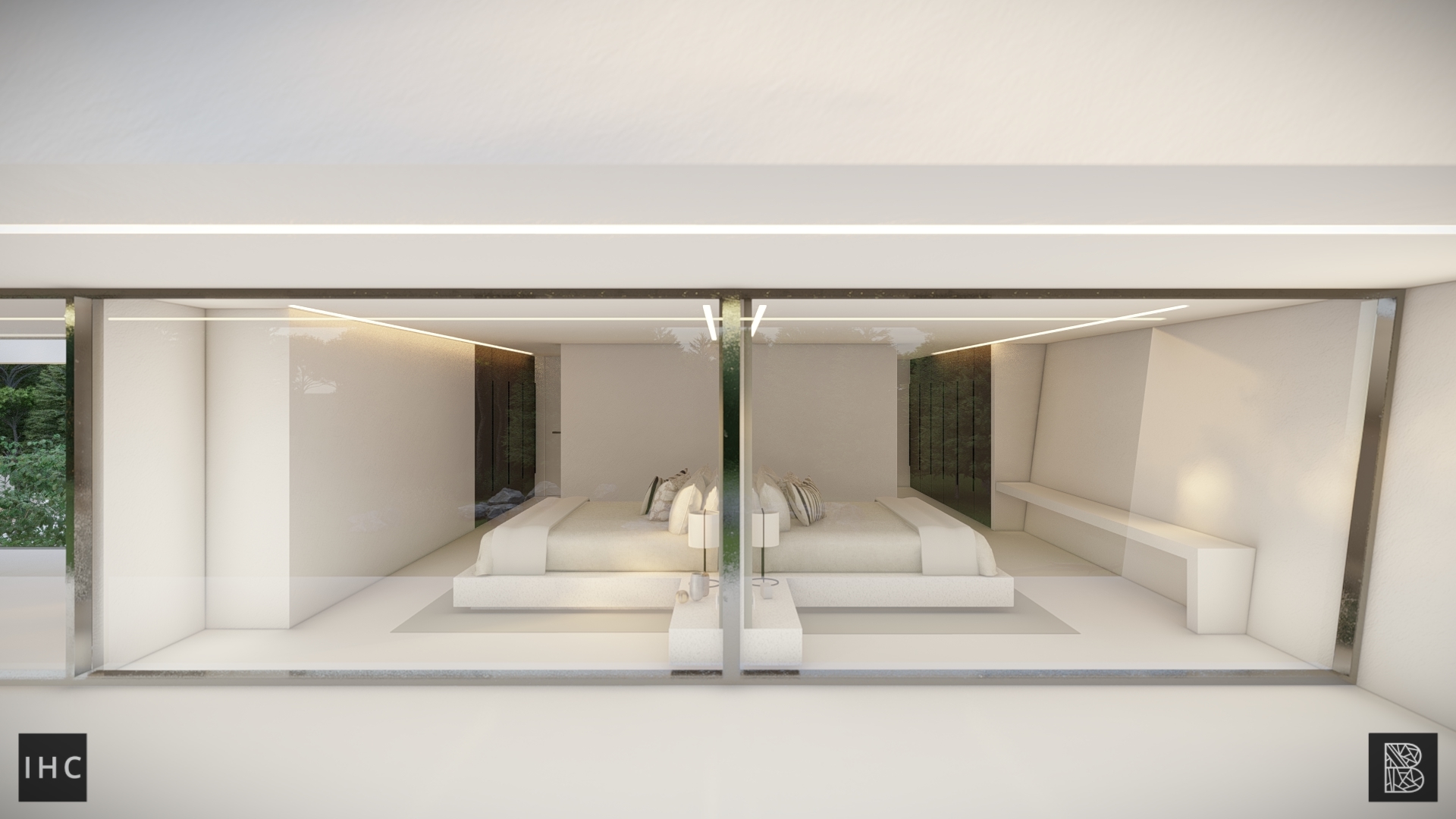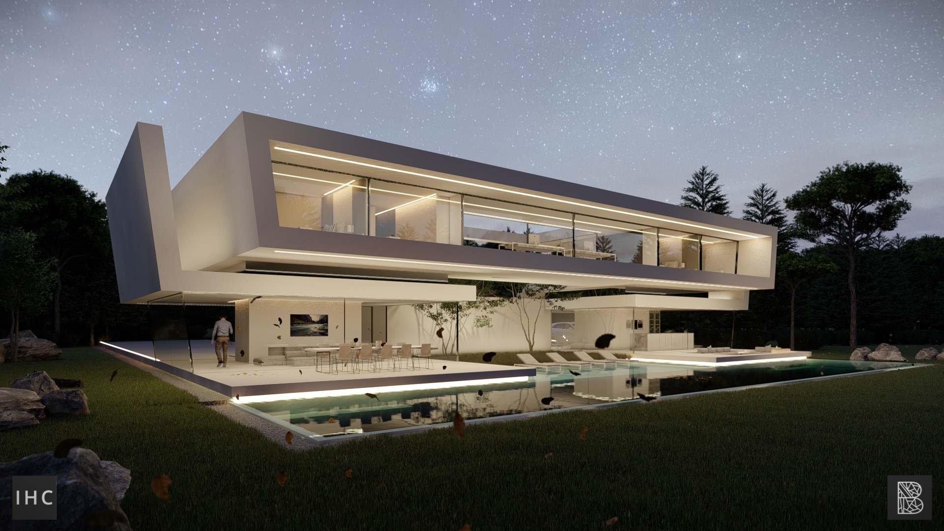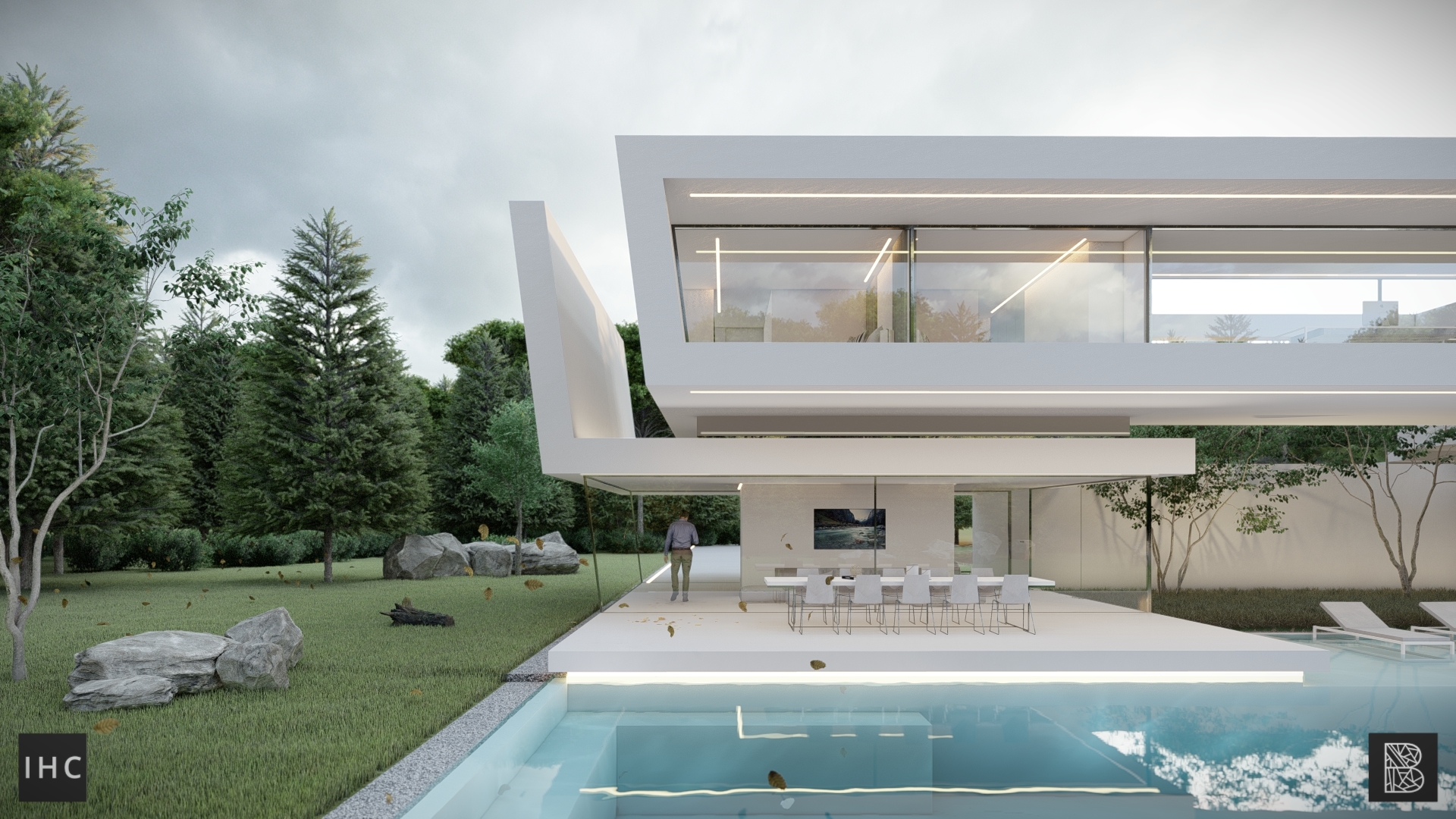 The concept of this house is continued and perfected in every architectural decision. By distinct LED lines, the most important architectural lines are accentuated. The white stucco material makes these lines stand even more.