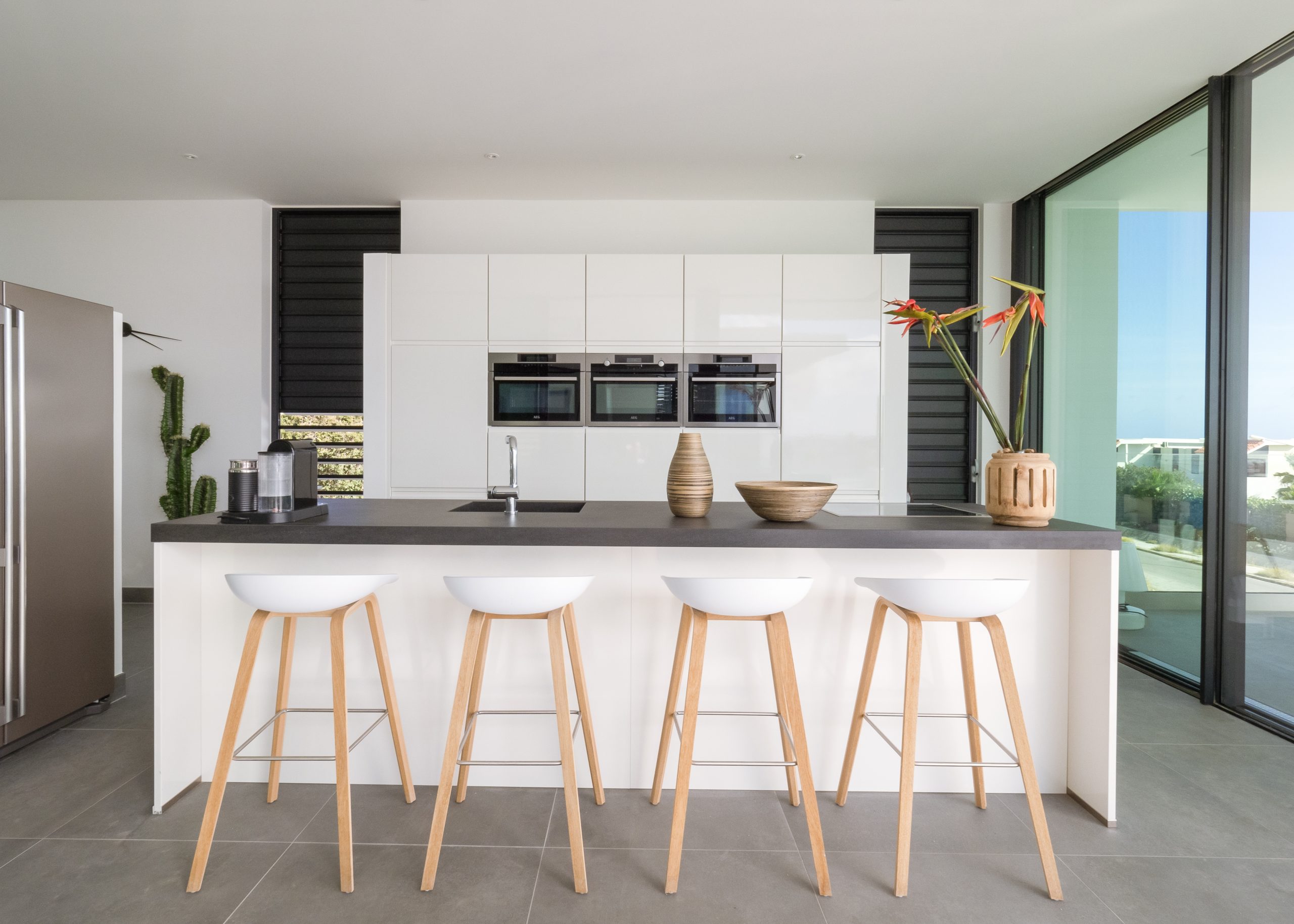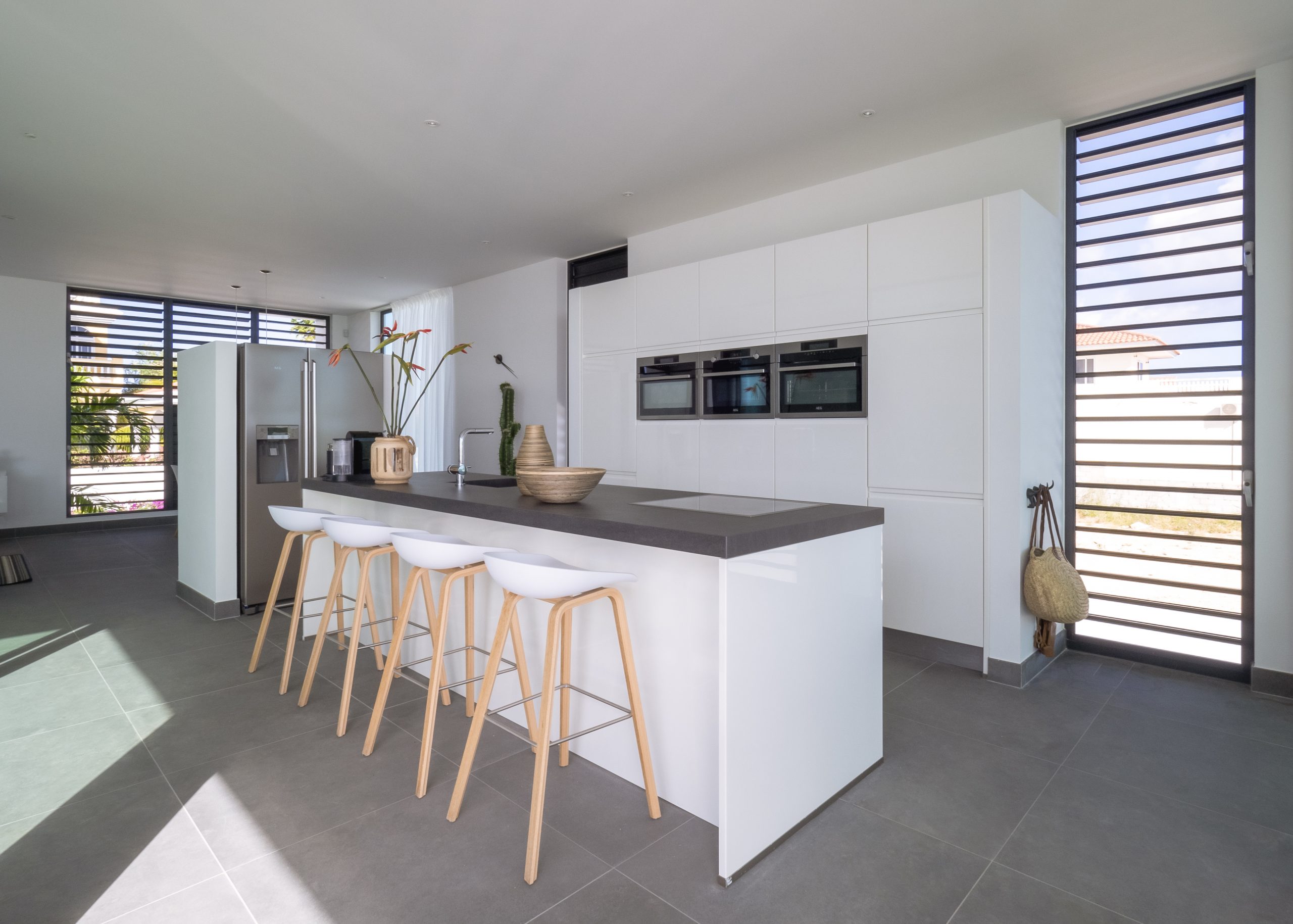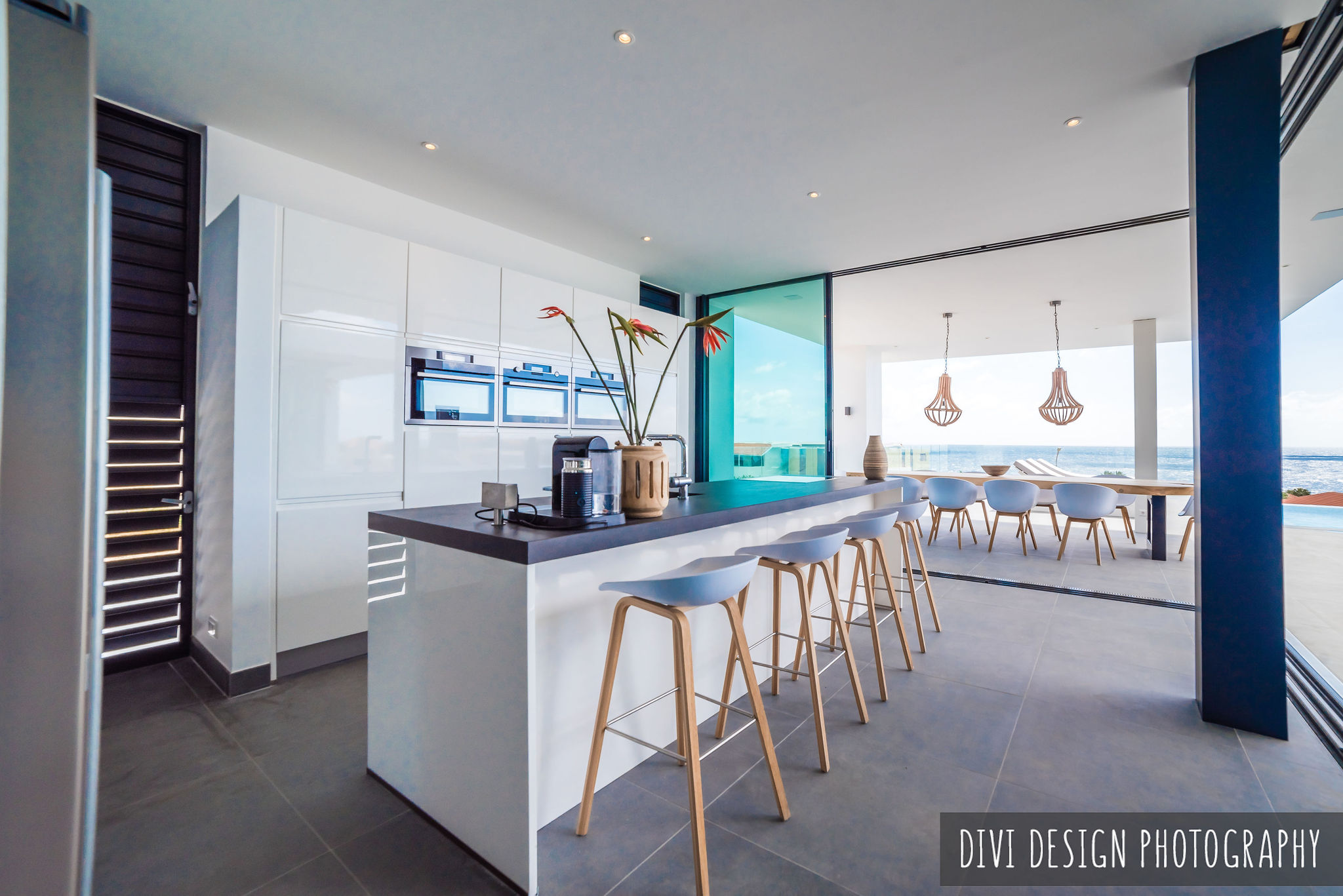 Creating a villa that optimizes the views over the Caribbean sea, without sacrificing privacy from the neighboring villa located directly behind this holiday home was the starting point for this concept. The villa consists of three cubistic shapes, opening up the main living areas and master bedroom to the outside living areas and pool.